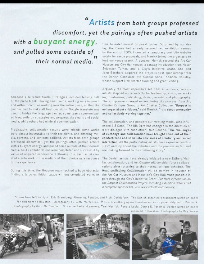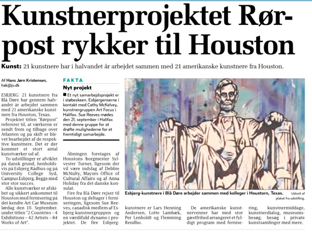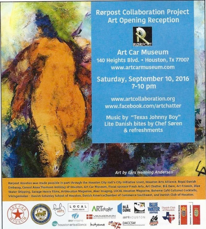 I perioden 10. september til 30. oktober udstillede jeg på Art Car Museum i Houston sammen med 40 andre Esbjerg og Houstonkunstnere. Se mere http://www.artcollaboration.org/