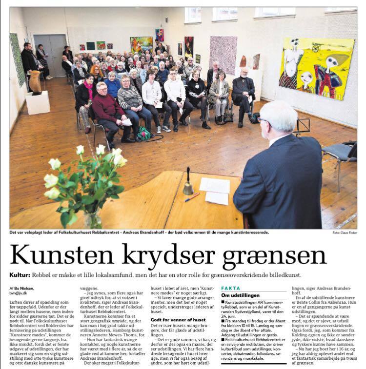 Foråret 2016 udstillede jeg sammen med 16 danske og tyske kunstnere i Rebbøl Centret i Sønderjylland.
