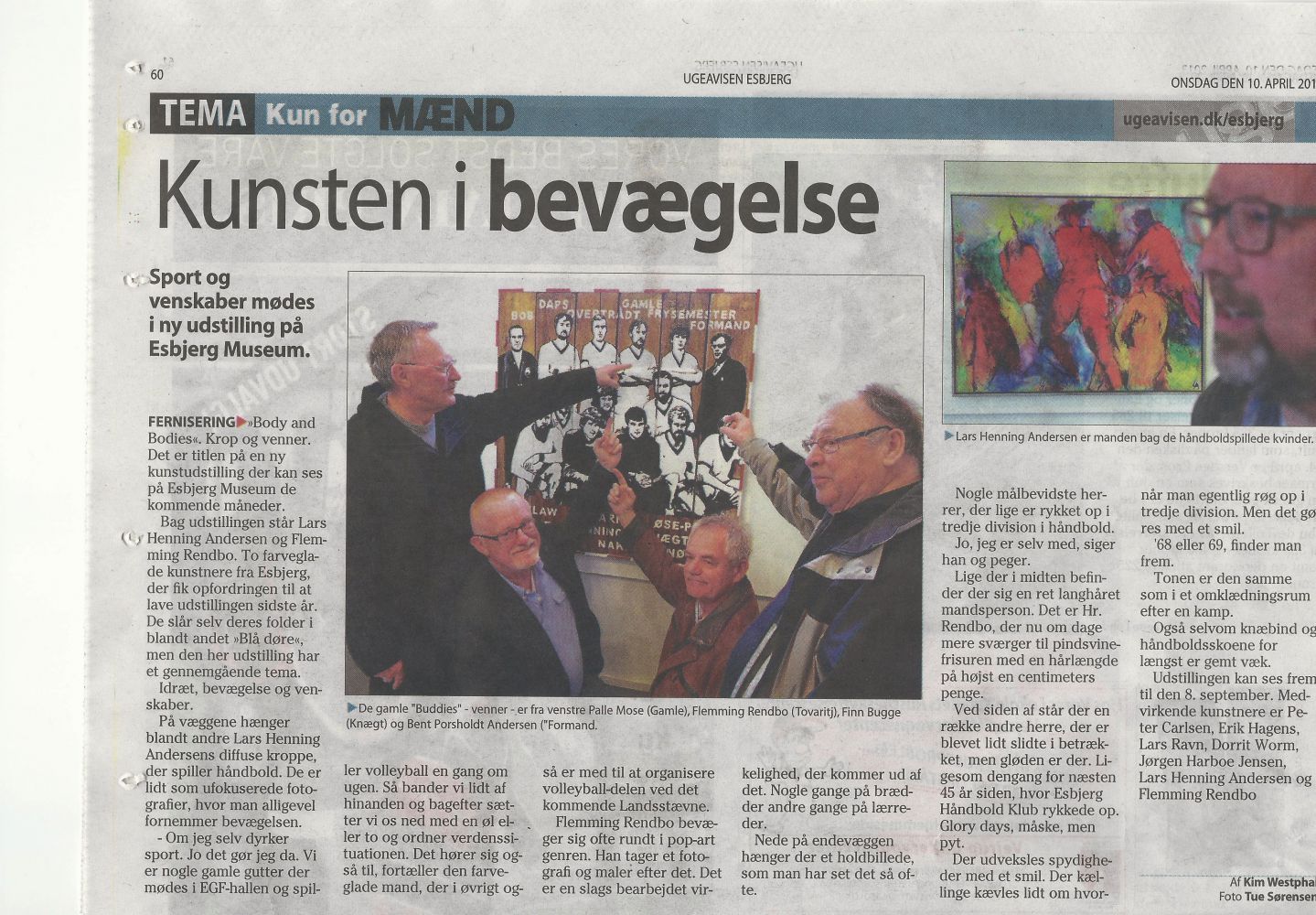 Foråret 2013 udstillede jeg på Esbjerg Museum sammen med 5 andre gode kunstnere - Peter Carlsen, Flemming Rendbo, Dorrit Worm, Lars Ravn og Erik Hagens. Udstillingen havde som tema fortolkninger over idræt, krop og bevægelse..