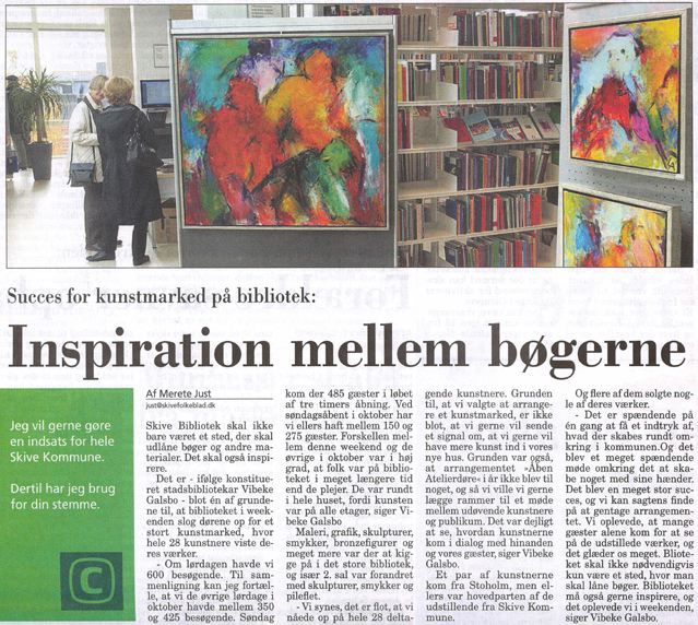 Lørdag 31. oktober og søndag 1. november deltager jeg, sammen med 30 andre gode kunstnere, på kunstmarked/kunstudstilling i Skives nye bibliotek.
