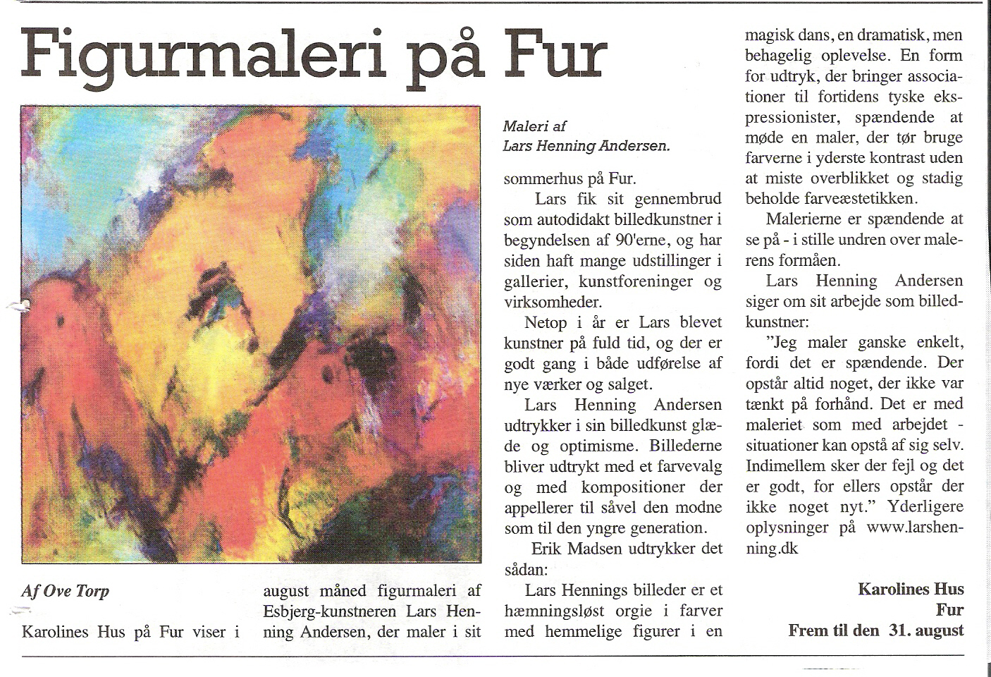 Hele sommeren 2013 udstillede jeg i Fur Kunsthal. Jeg vender tilbage i 2014.