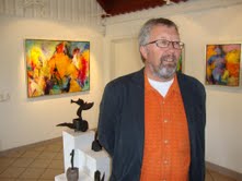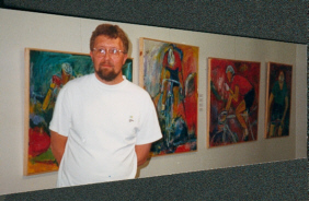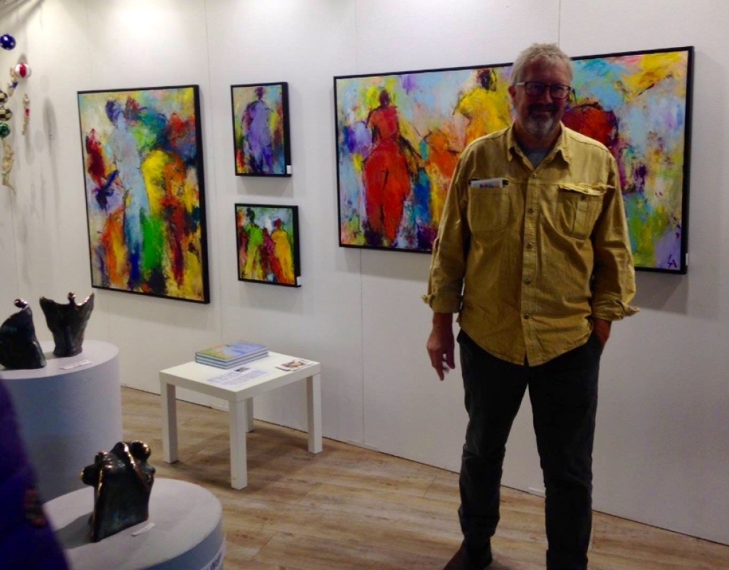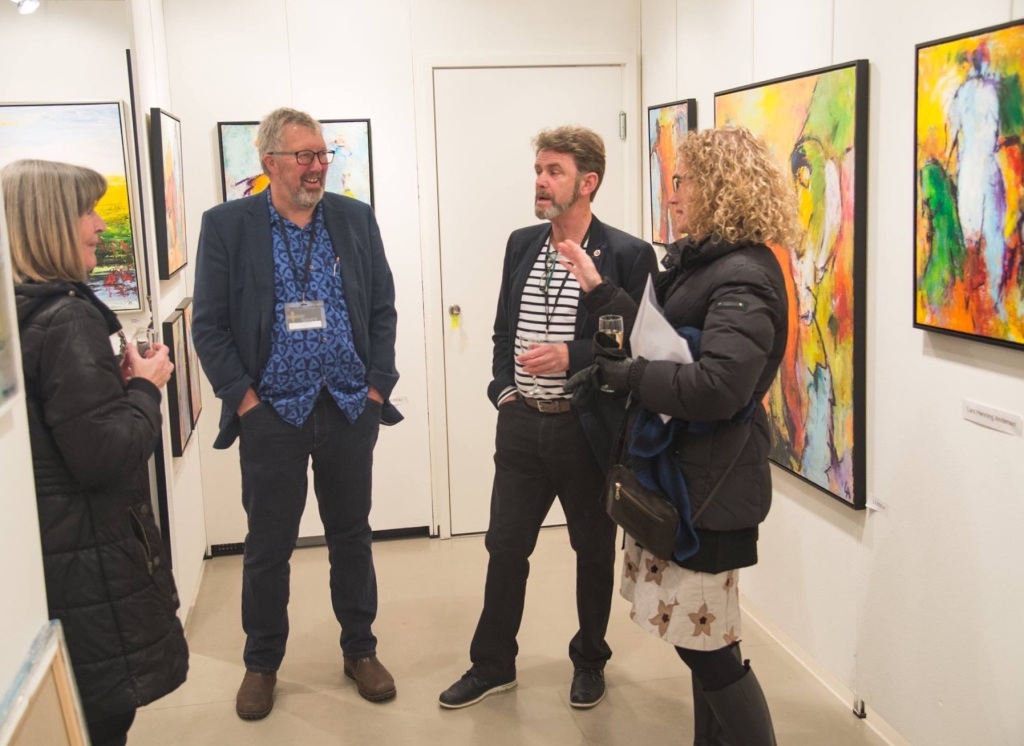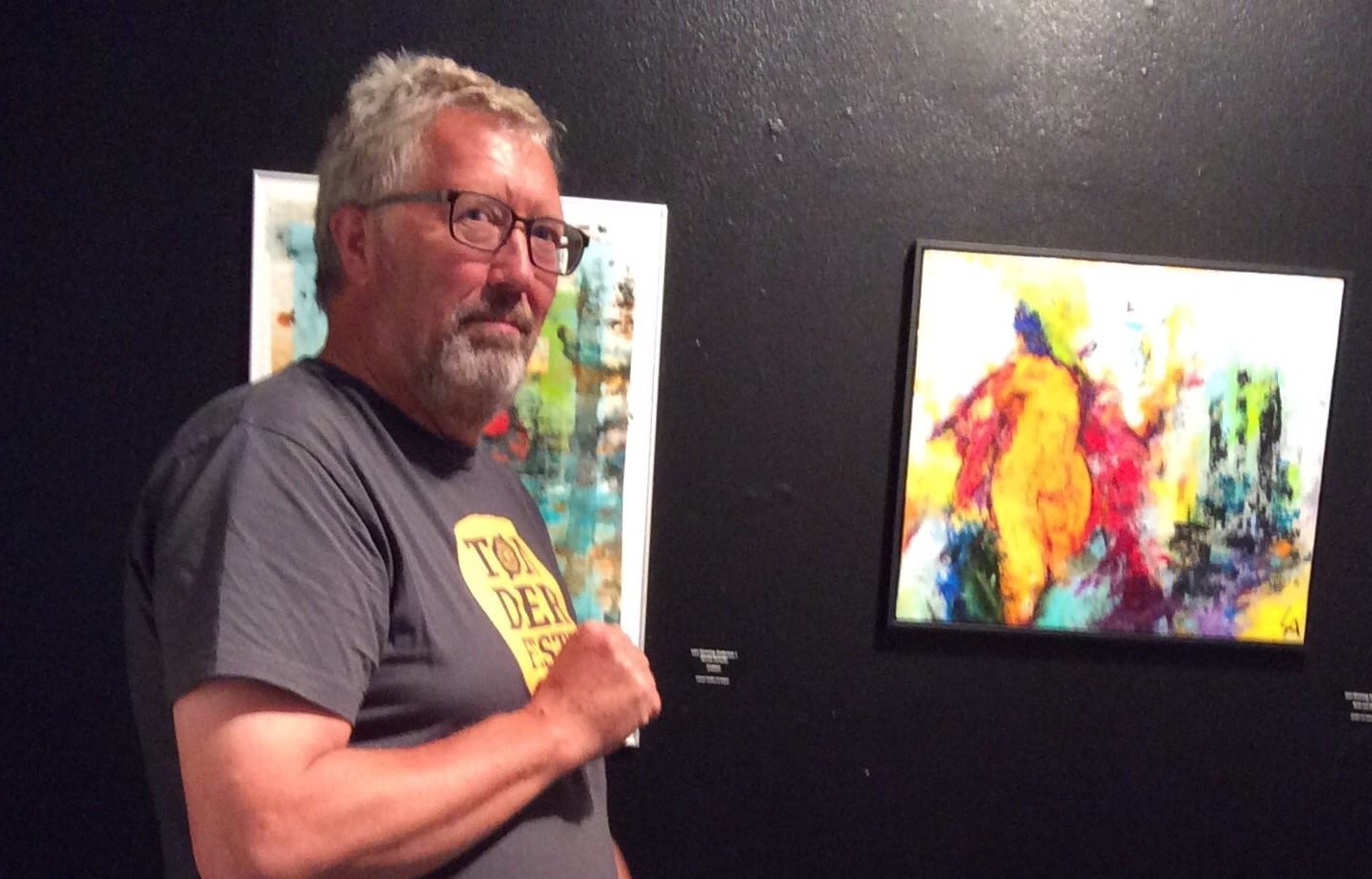 I går åbnede Lars Henning Andersen sin fernisering i Treenighedskirken. 23 farvestærke værker i forskellige størrelser mødte de fremmødte i kirkens foyer, hvor kunstneren tog imod og introducerede sine malerier.𝗙𝗿𝗮 𝗹𝗮𝗻𝗱𝘀𝗸𝗮𝗯𝗲𝗿 𝘁𝗶𝗹 𝗰𝘆𝗸𝗲𝗹𝗹ø𝗯 𝗼𝗴 𝗳𝗮𝗯𝘂𝗹𝗲𝗿𝗲𝗻𝗱𝗲 𝗳𝗶𝗴𝘂𝗿𝗲𝗿Lars Henning Andersen begyndte sin kunstneriske rejse med landskabsmalerier, men udviklede siden en særlig interesse for cykelløbets visuelle dynamik. Hans fascination af Tour de France har resulteret i en række energifyldte cykelrytterbilleder - fra store værker til cykelklubber til store billeder og plakater. Fælles for hans malerier er et ekspressivt udtryk og et særegent farveunivers.𝗜𝗻𝘀𝗽𝗶𝗿𝗲𝗿𝗲𝘁 𝗮𝗳 𝗮𝘇𝘁𝗲𝗸𝗲𝗿𝗻𝗲𝘀 𝗯𝗶𝗹𝗹𝗲𝗱𝘃𝗲𝗿𝗱𝗲𝗻I midten af 90’erne modtog han en uventet henvendelse fra en kunstner fra Honduras, der viste sig at være colombianer. Han genkendte aztekiske og mayanske elementer i Lars Henning Andersens værker og foreslog en kunstudveksling. Det førte til en længere korrespondance og en byttehandel, hvor Andersen sendte et af sine værker og modtog et stort og farvestrålende maleri på bananpapir med aztekernes historie gengivet på spansk, som han nu har hængende i sit hjem til daglig glæde.Korrespondancen med den latinamerikanske kunstner blev en katalysator for en dybere interesse i aztekernes og mayaindianernes kultur. En omfattende bog på 800 sider om emnet blev en central inspirationskilde, og elementer fra disse civilisationer har siden sneget sig ind i hans kunstneriske udtryk, både bevidst og ubevidst.Lars Henning Andersens udstilling i Treenighedskirken viser en kunstner med en tydelig stil og et gennemarbejdet formsprog, hvor farver, bevægelse og historiske referencer smelter sammen.Lars Henning Andersen er også aktuel i Strandgalleriet i Vejers, og arbejder på malerier til en udstilling nordpå. Lars bruger akrylmaling til sine billeder som han påfører med både pensel og hænder, og den kombination er med til at give hans billeder deres specielle udtryk.